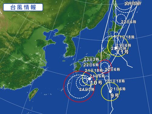 異常気象はこういう形で現れるのか。 一昔前は台風銀座という言葉があって、四国当たりがそう呼ばれていた。 ところが今回は関東の沖である。 予想図をみてもぐちゃぐちゃでようわからん。 私が住む地域も進路に含まれている。 みなさんも気をつけてください…