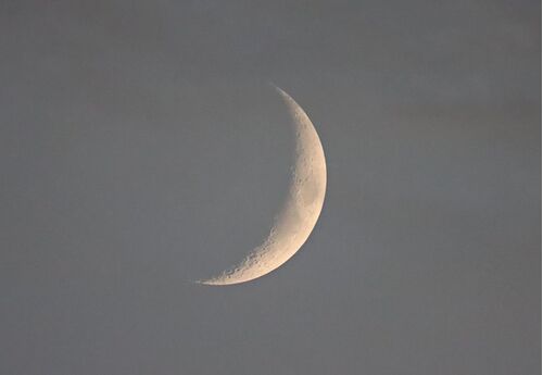 今回の三日月は高度が低く金曜日帰宅したときにはマンションの影に落ちてしまった。 昨日の土曜日はなんとか撮影できた。 日の入り頃に一枚、暗くなってから一枚。