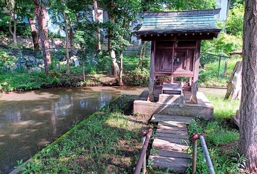 写真は小さな池の中央に鎮座する弁財天、実はただの池ではなく水源。調べてみるとこの台地の2km四方にいくつかの水源が集まっている。それぞれがちがう向きに流れていきそれぞれの水系を作る。台地の中央部分を分水嶺と呼ばれる。今となっては住宅地、もとも…