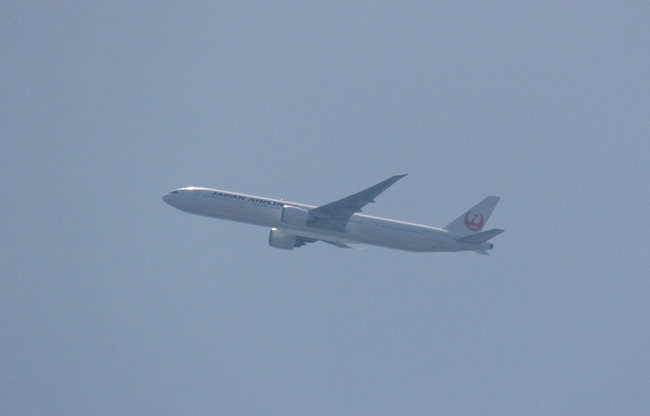 目を凝らして見るとプロペラ機がチラリと見えた。