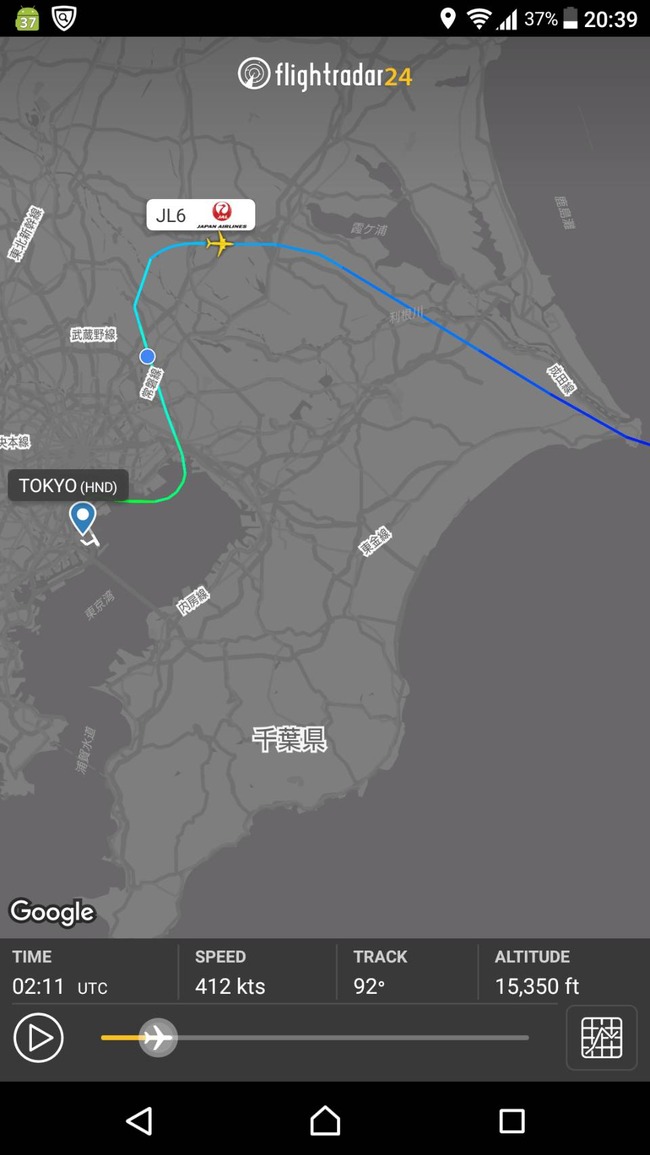 エマージェンシーだったので当然前後の飛行機はいない。