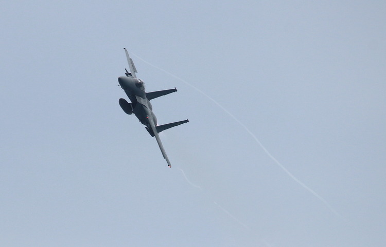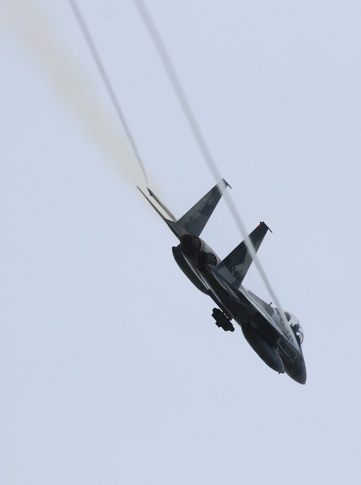 2017-09-18 台風の影響その2 飛行機 今朝は朝から快晴である。 日差しも強い。 夏に使っていたスニーカーの洗濯。 掛ふとんを干した。 駐車場に行くと愛車がひどいことに。 泥はついていないが、濡れた枯れ葉がこびりついている。 水洗いで簡単に取れるのだけど、2台分結構な量だ。 さらにもっと問題だったのは、この天気の急変でやぶ蚊が異常発生。 洗車している間に10発ぐらい刺されていた。 先程、小松基地祭の中止を書いたが 私は先週に機動飛行の訓練を見物できた。 とってもラッキーであった。