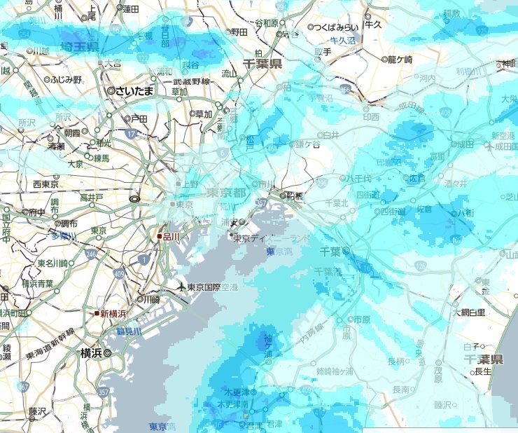 天気予報は映画の想定より当たらないが、こうして雨雲をリアルタイムで見られる。