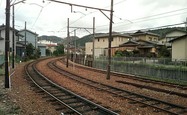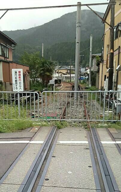 手取川沿いに北鉄の廃線跡がサイクリングロードとして活用されているのがわかる。