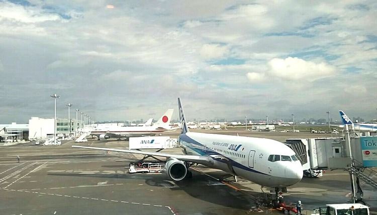 搭乗口の待合室から見覚えのある垂直尾翼。