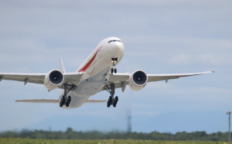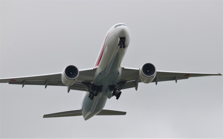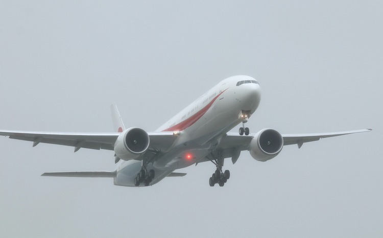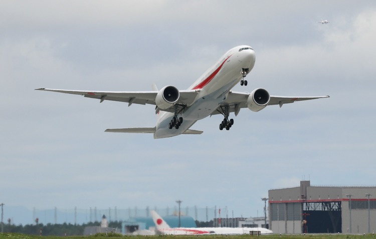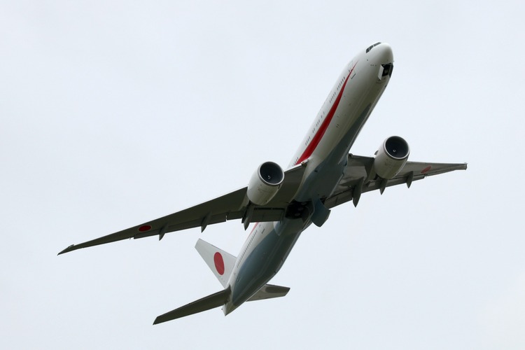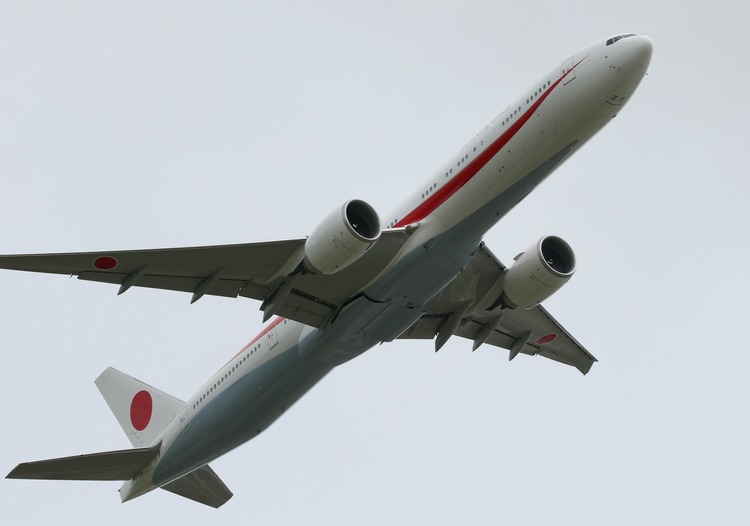 2019-07-26 政府専用機 飛行機 B747が3月に引退して、B777-300ERになった。 すでに何度かマスコミで紹介されていたが、実物を見るのは初めて。 747より小ぶりに見えるが数値だけ見るとほぼ同じ大きさ。 それでも音は静かだし、747のような迫力や存在感がない。 これも時代の流れだから仕方ないのだろうけど。