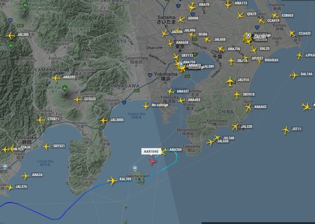 フライトレーダーではこんな感じ。