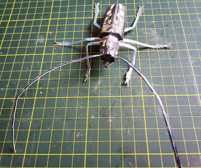 2021-08-17 今日の月 写真 前回、月を見たのはいつだったか。 先先週末の8日が新月だった。つまりそれ以前から見ていなかったわけで。 今回の長雨はこれで終わるのかな。 今日は久々の出勤、かっぱを着てバイクで行ったが、朝は小雨、帰りは雨上がりで日がさしていた。 盆休みの終わりにちょいとペーパークラフト。 この大きさなのにA4用紙1枚でできている。 2時間以上かかった。