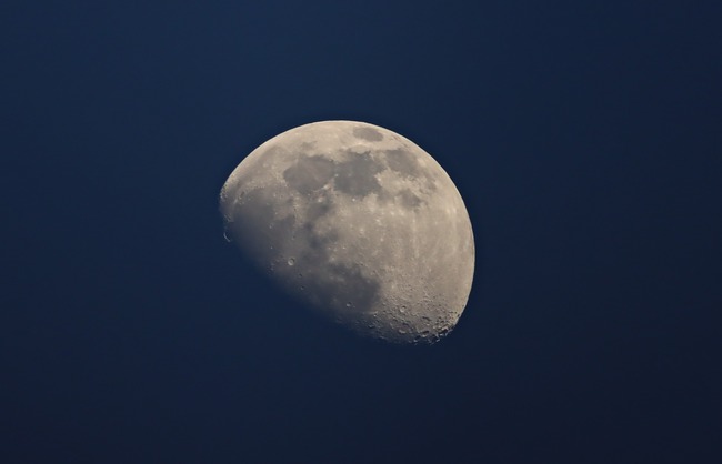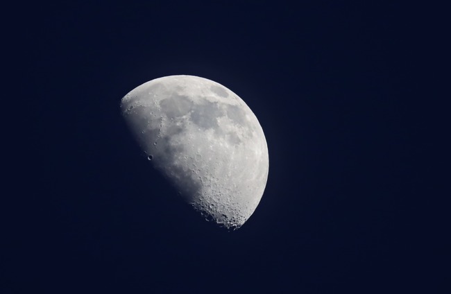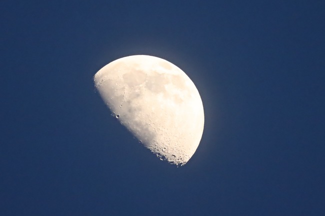 先日日没前後に月の撮影。上弦の日は天気が悪かったので1日あとの月だと思う。最初はカメラの露出で撮影。空の青さも出ていて色味としてはこれがいい感じ。