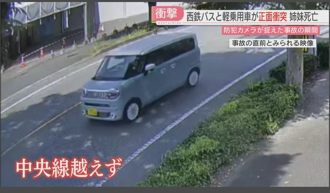 軽自動車は比較的新しい女性が好むパステルカラーのリアスライドドア。それがセンターラインを超えて路線バスにまっすぐ突っ込んでいったという。