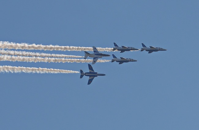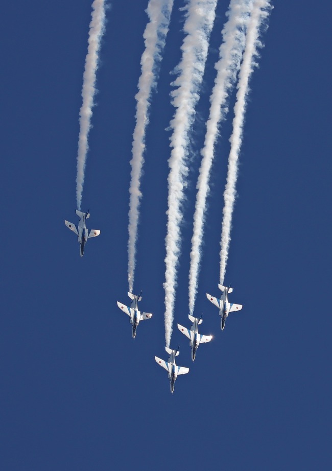 青空に舞うブルーインパルス 背面飛行や垂直上昇、急旋回などの曲技披露し歓声 空自・入間基地で航空祭 5年ぶりの一般公開に25万人