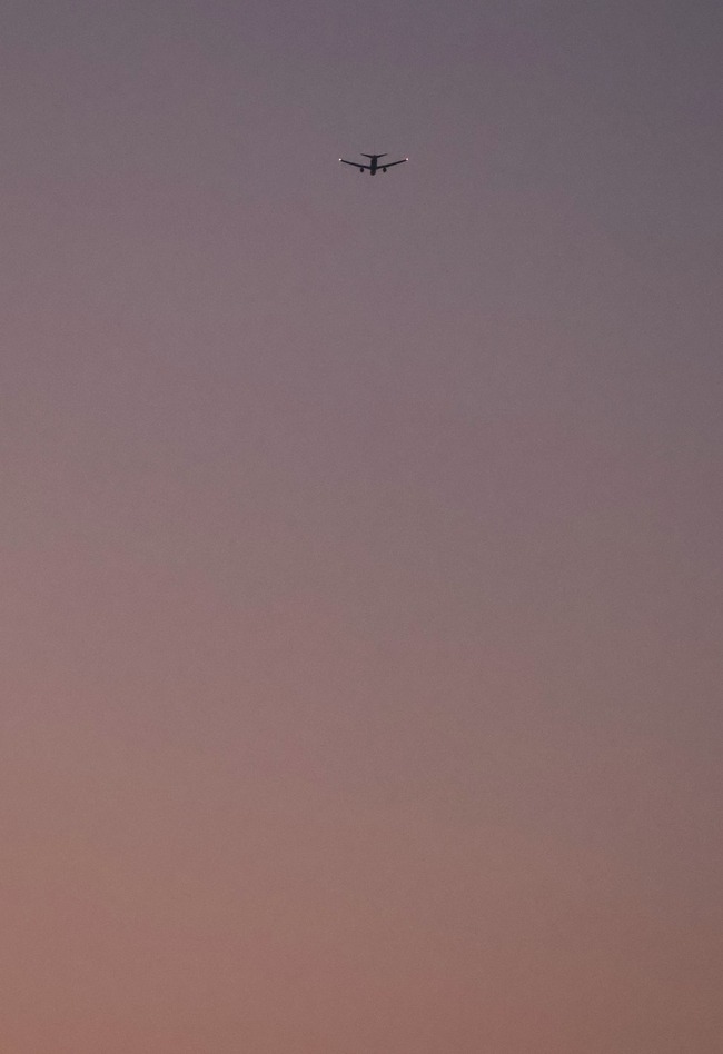 夕刻に羽田アプローチが南風運用都心ルートになったので日没を見ながら屋上で撮影。